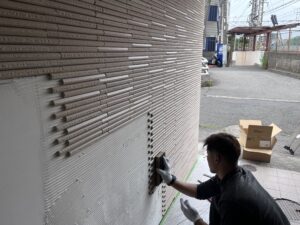 松戸市のお客様よりエントランスの壁のタイル貼りを行いました。